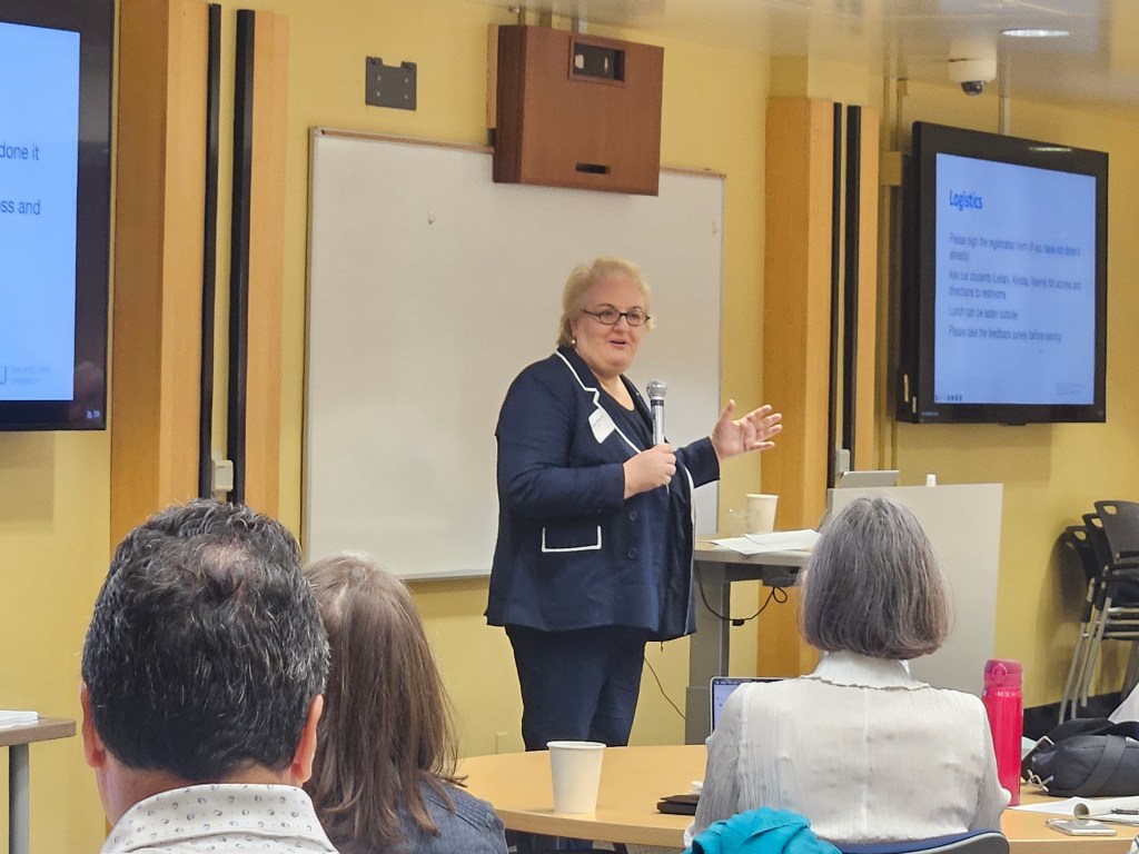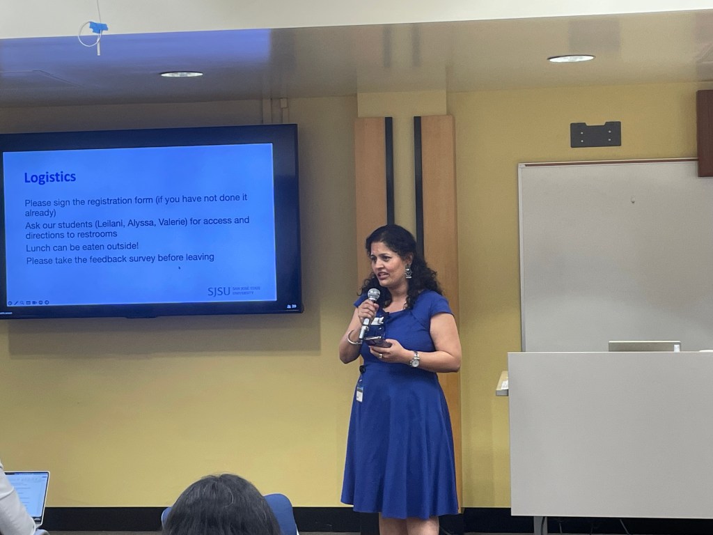 Event kickoff with Priya Kannan, Dean of Lucas College and Graduate School of Business and Susanna Khavul, Chair of the San José State University School of Management, followed by logistics overview given by Sumita Raghuram, professor at San José State University School of Management.