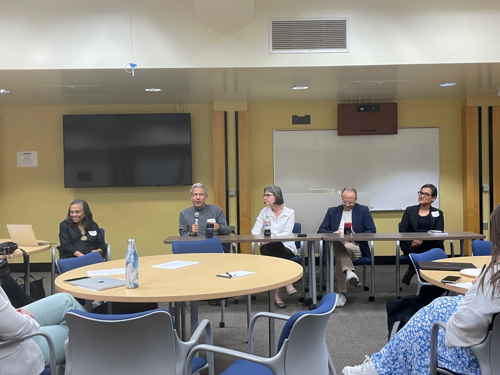 Panel discussion featuring Noshir Contractor (Northwestern University & Stanford University), Terri Griffith (Simon Fraser University), Prachee Jain (Denso), and Stefano Marzani (Amazon Web Services). Moderated by Sumita Raghuram (San José State University School of Management).